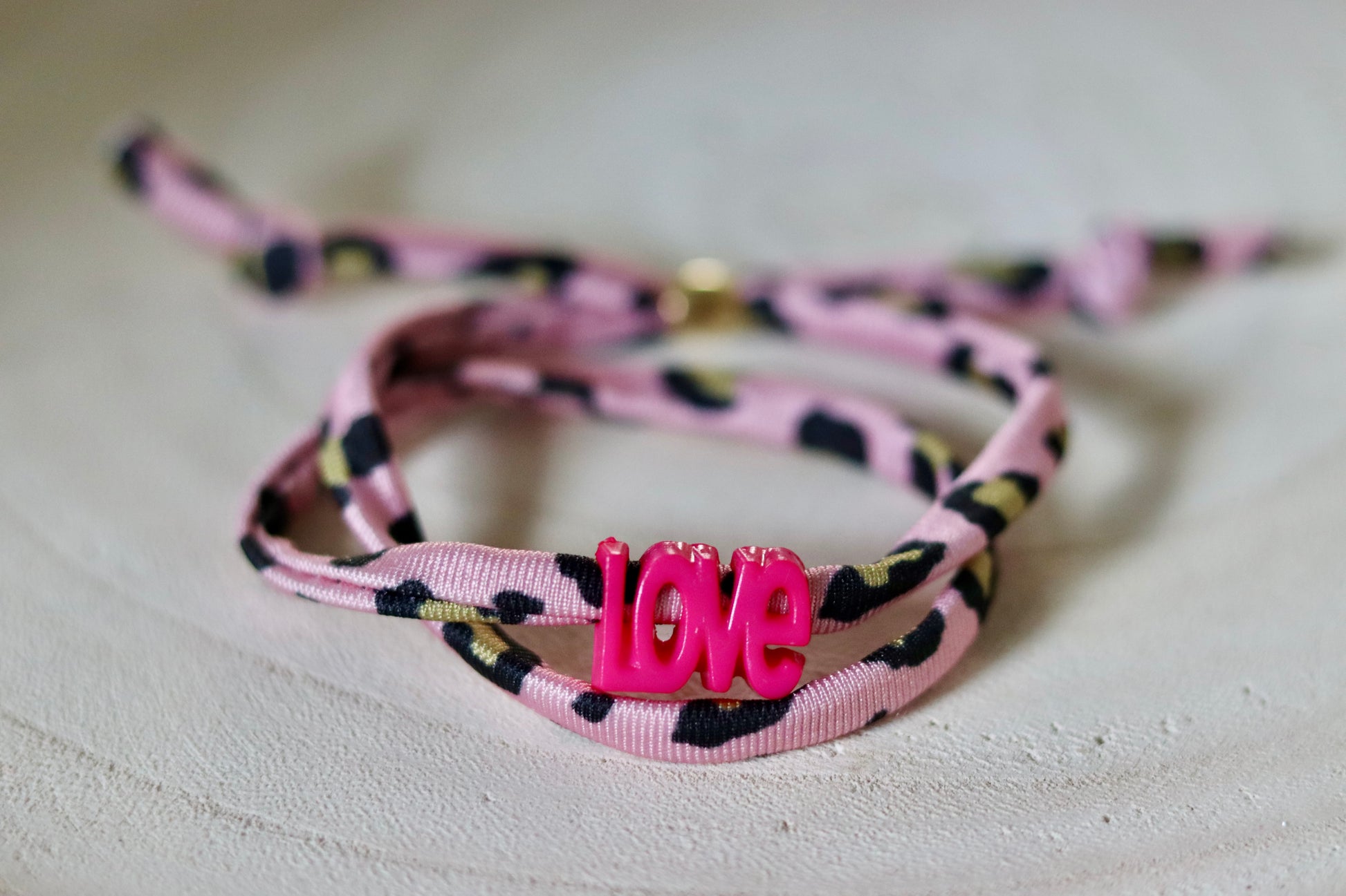 Mach dein Handgelenk zur Liebeserklärung! Das happymaker LOVE-Armband kombiniert verspielten Leoprint in Rosa & Schwarz mit einem zarten “LOVE”-Statement in Pink – für alle, die Mode mit einer Botschaft tragen wollen.