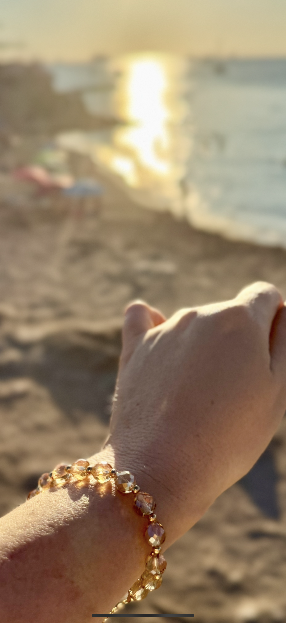 Zeitlose Eleganz für dein Handgelenk: Dieses zarte Armband mit schimmernden Glasperlen in edlem Hellgold verleiht jedem Outfit einen Hauch von dezentem Luxus.
